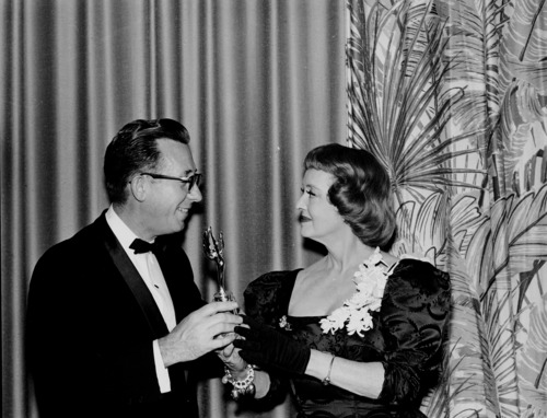 Wayne Wilcox recieving an award from Betty Davis..Best photographer